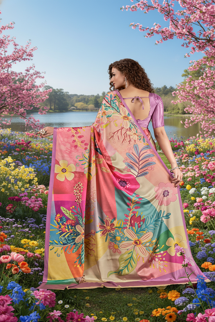Hypnotex multicolor printed saree with blouse