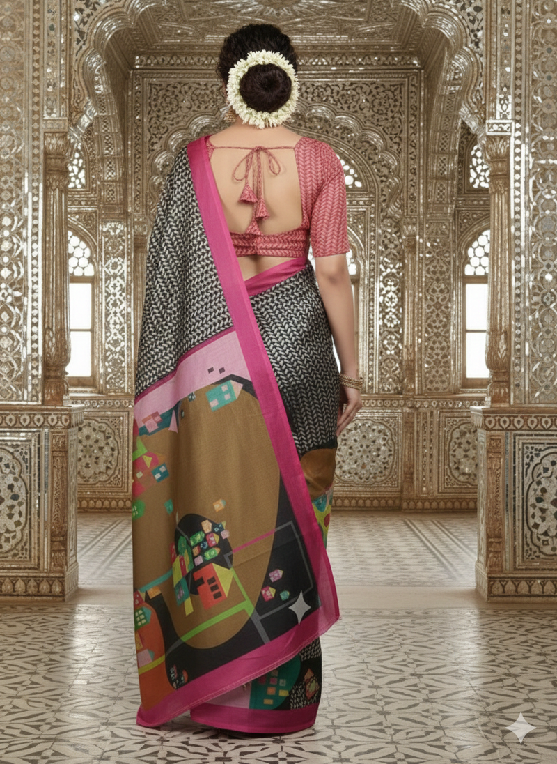 Multicolor premium printed saree with blouse
