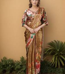 Mustard crepe digital rtw saree with pocket and stitched blouse