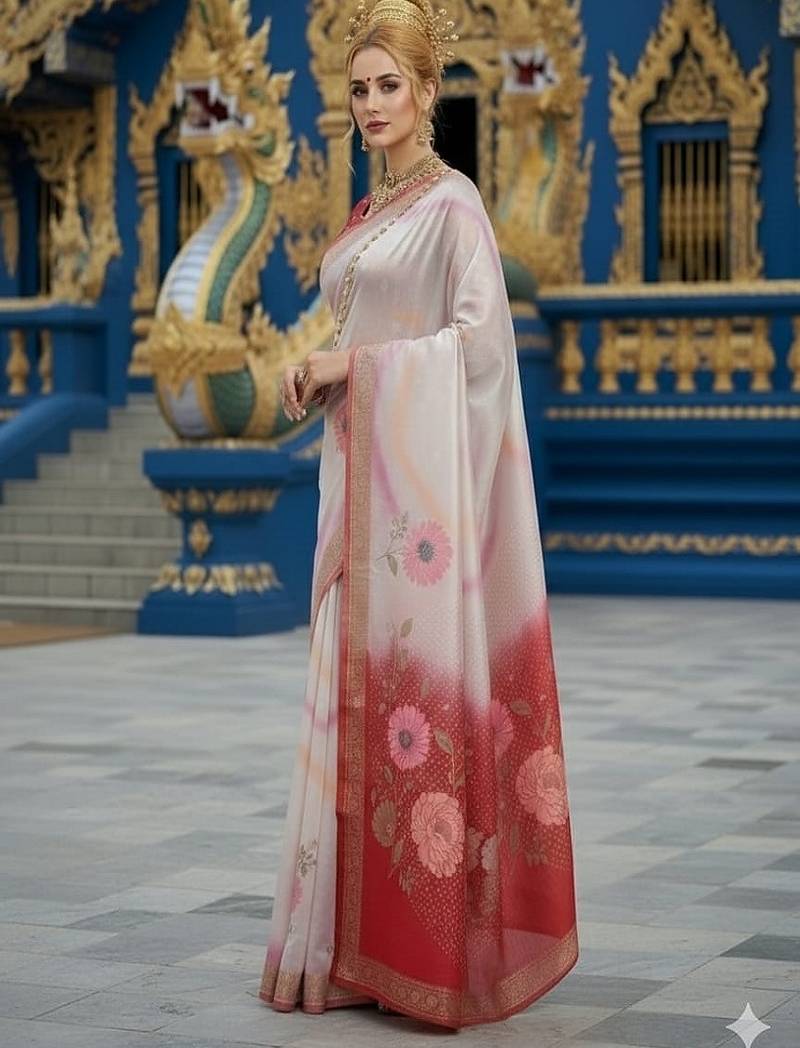 Product Name Red Ready To Wear Jacquard Silk Saree And Ready To Wear Jacquard Silk Blouse With Cup