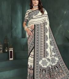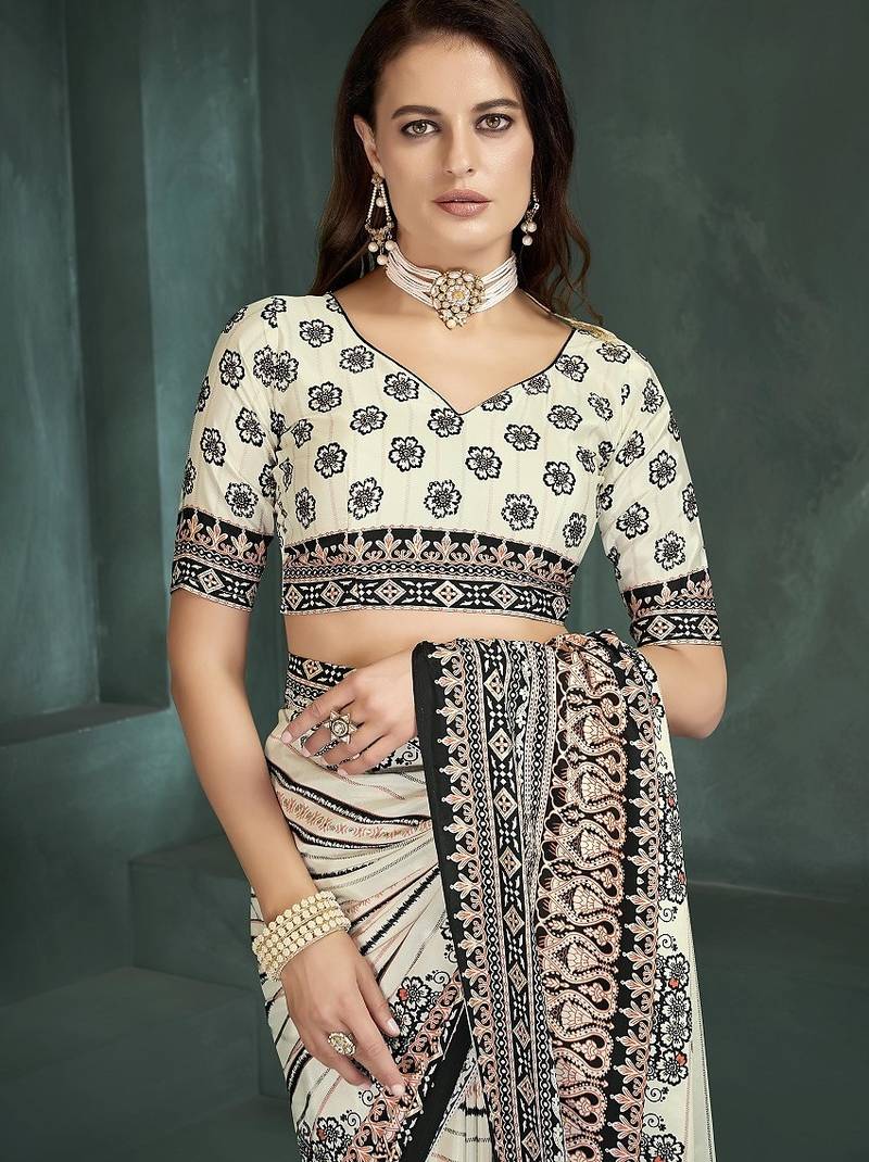 White or foil premium printed saree with blouse