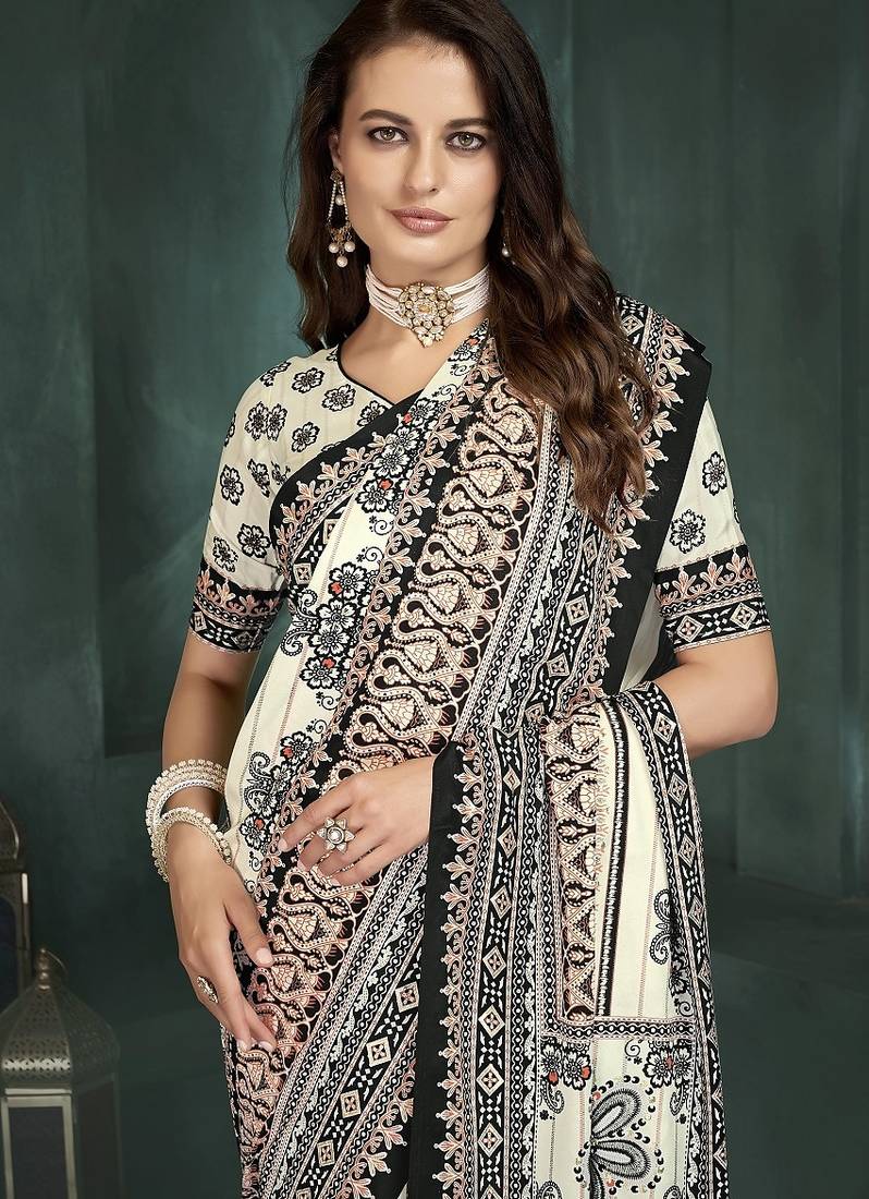 | Product Name | White Or Foil Premium Printed Saree With Blouse | |