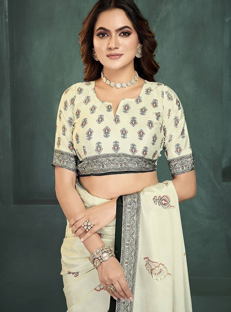 White or foil printed saree with blouse
