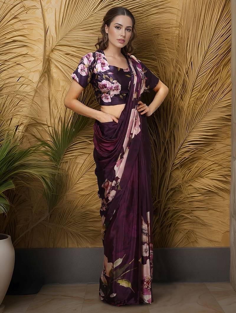 | Product Name | Wine Crepe Digital Rtw Saree With Pocket And Stitched Blouse | |