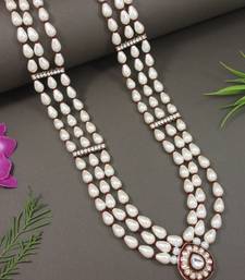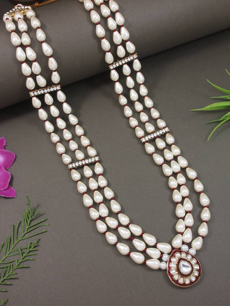 3 layered traditional gold plated dulha moti mala with beaded maharaja haar::Groom necklace for men (white maroon)