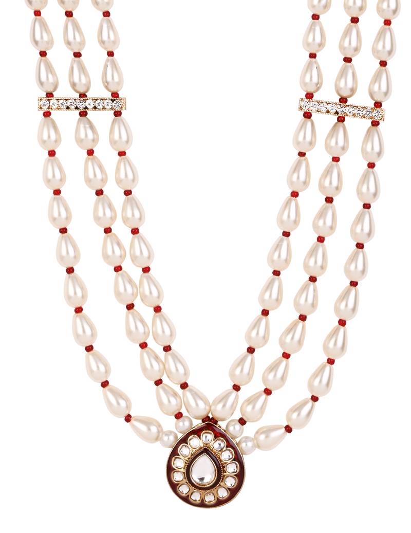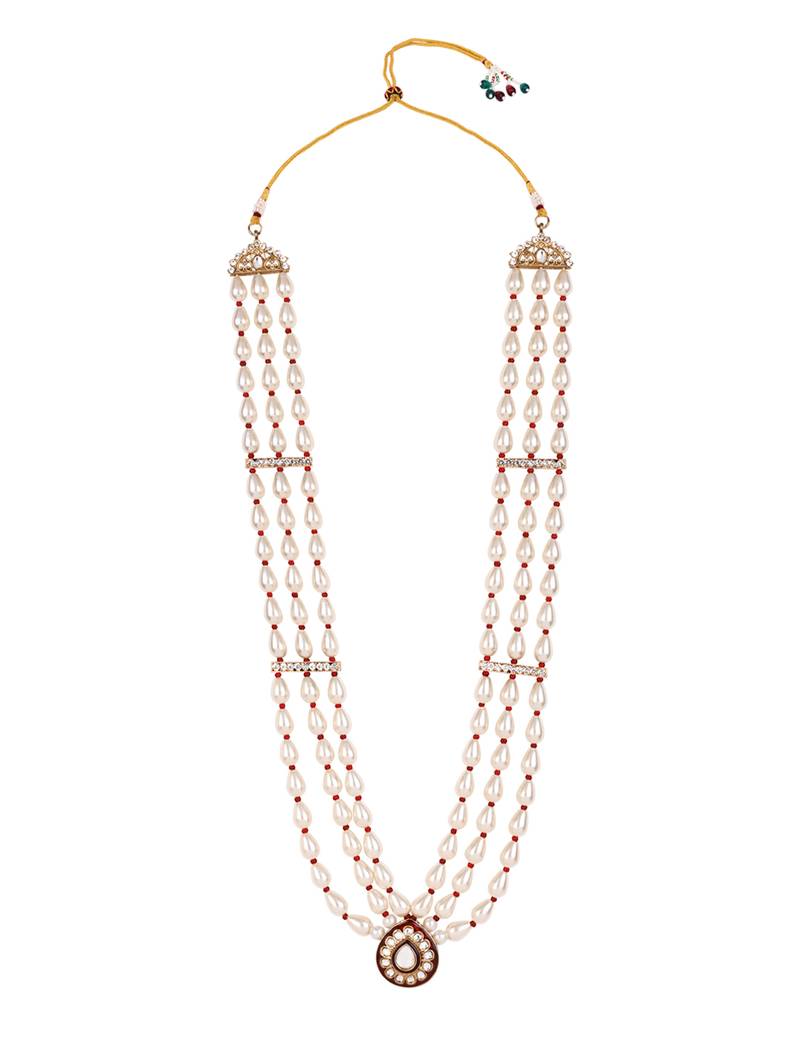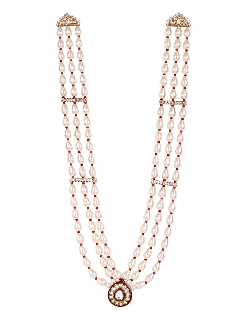 Product Name | 3 Layered Traditional Gold Plated Dulha Moti Mala With Beaded Maharaja Haar/Groom Necklace For Men (White Maroon) | |