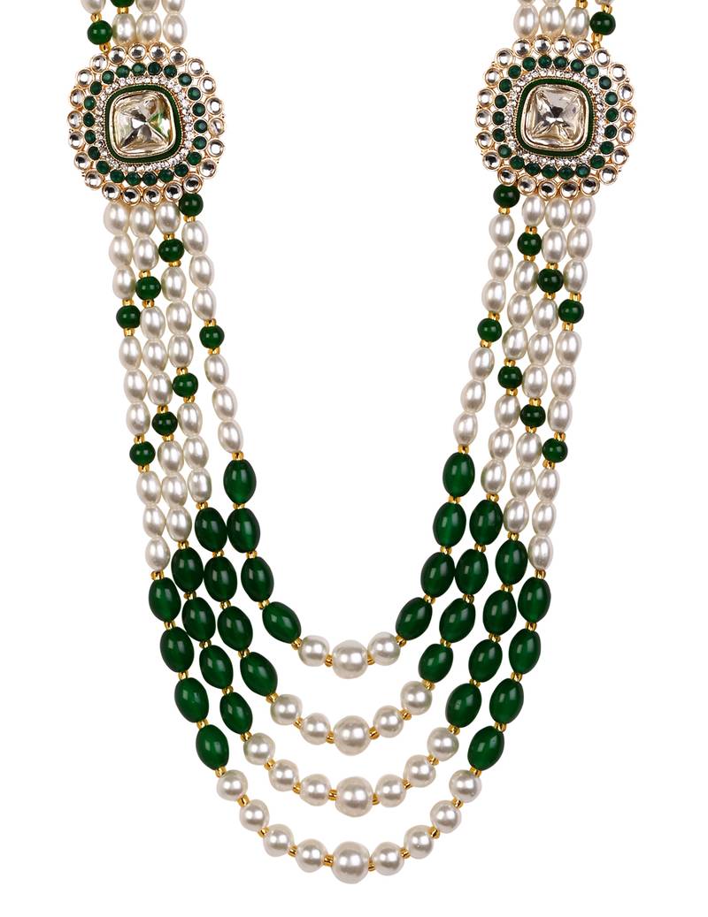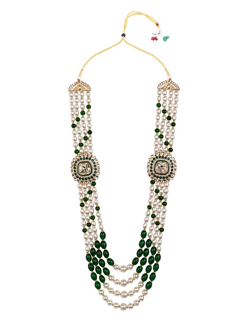 Product Name | 4 Layered Traditional Gold Plated Dulha Moti Mala With Beaded Maharaja Haar/Groom Necklace For Men (Green) | |