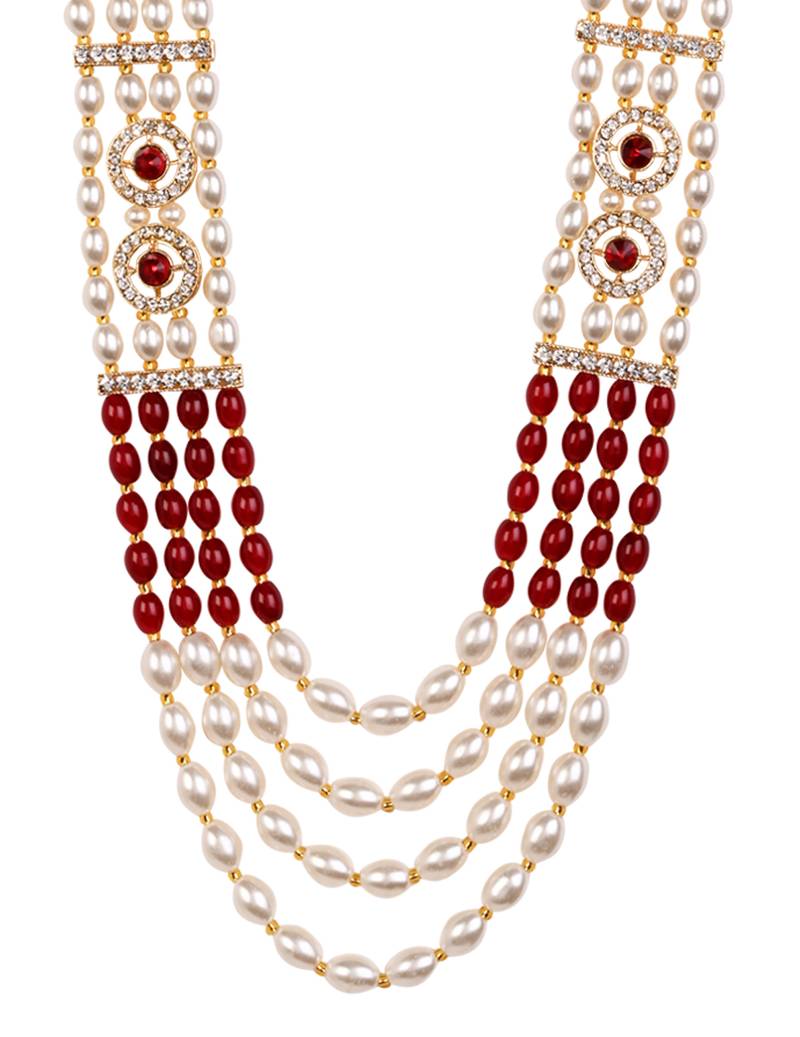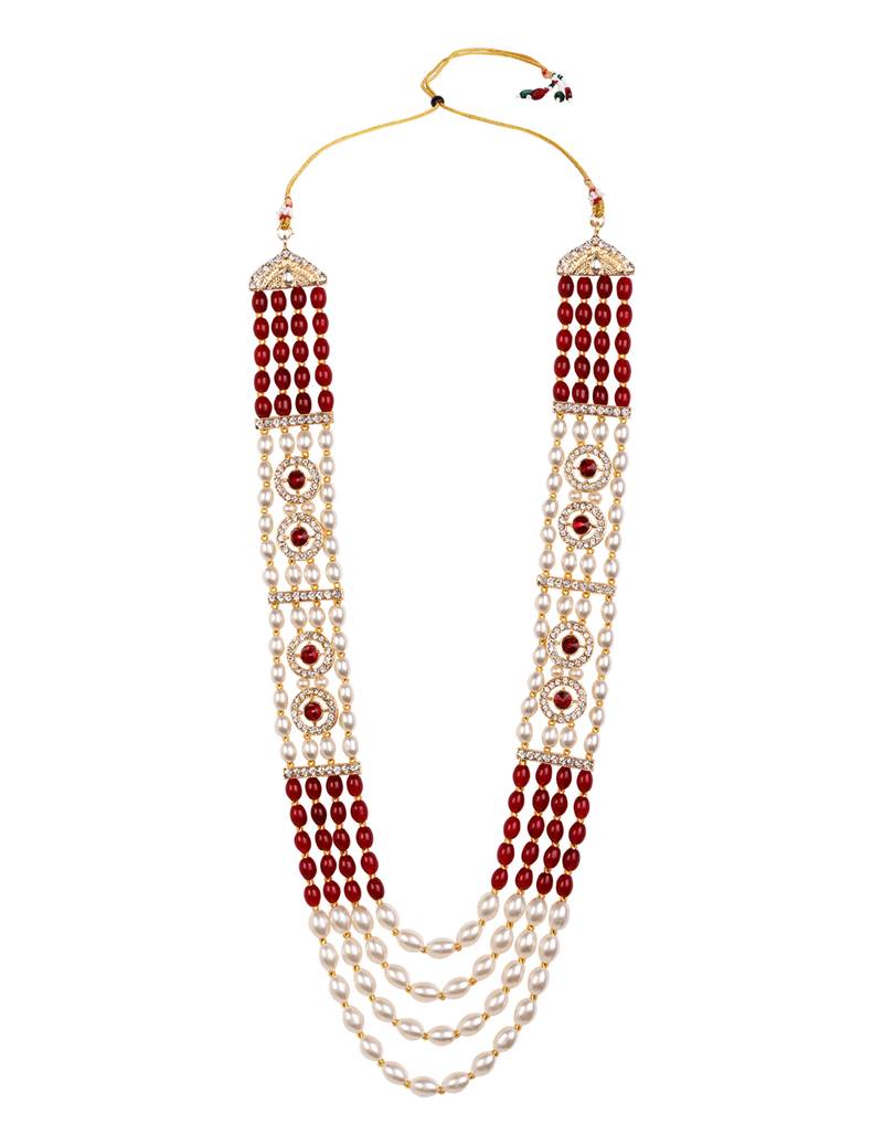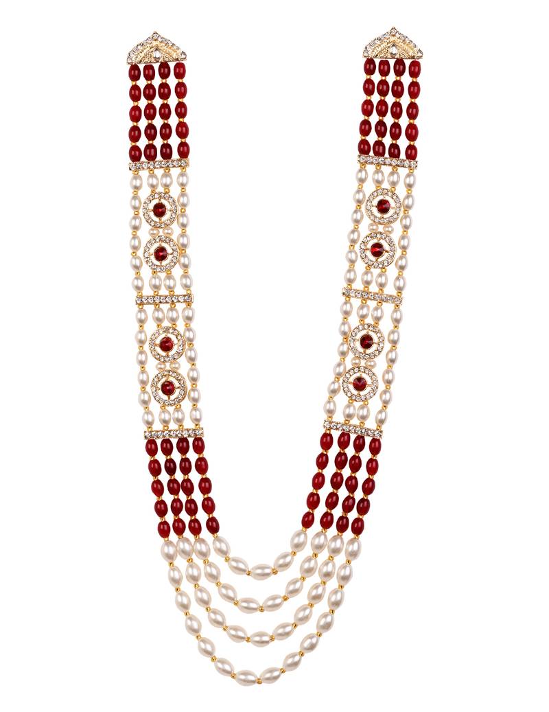 Product Name | 4 Layered Traditional Gold Plated Dulha Moti Mala With Beaded Maharaja Haar/Groom Necklace For Men (Maroon) | |