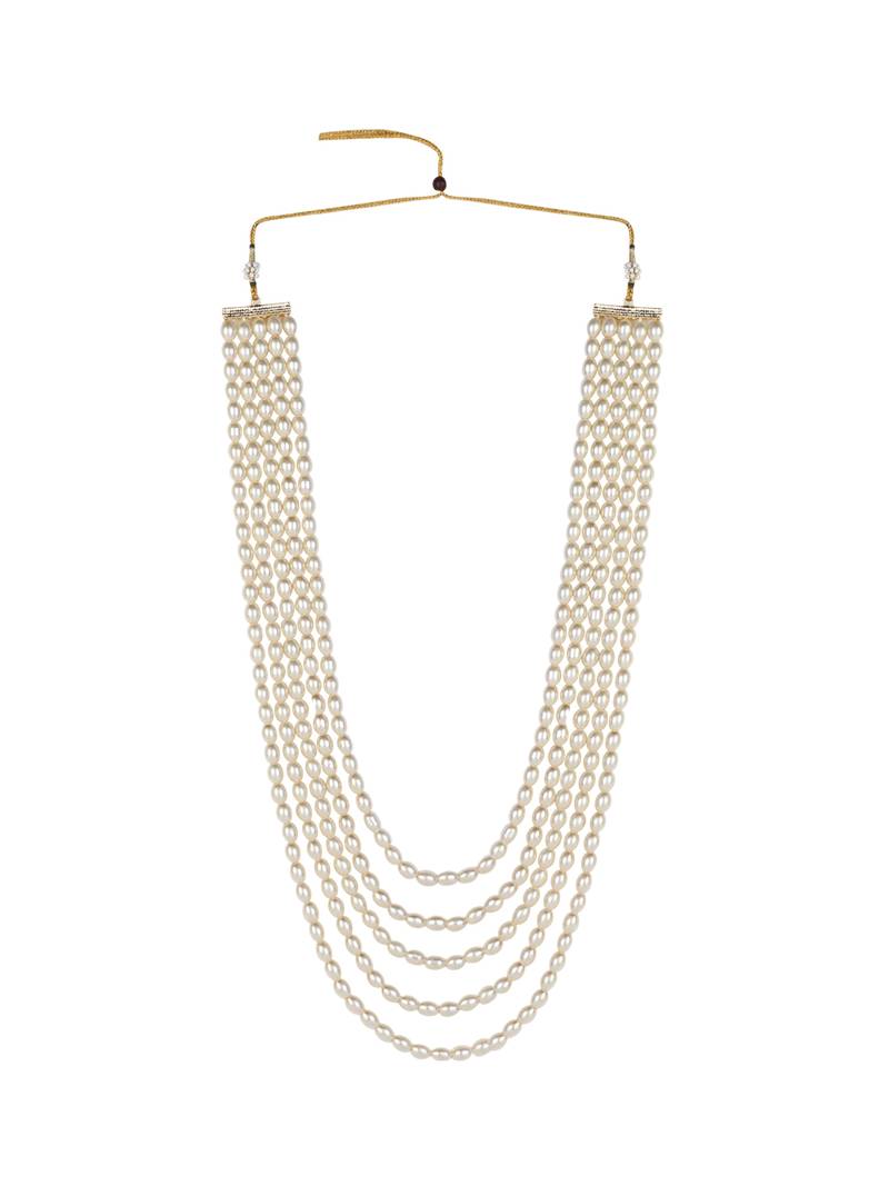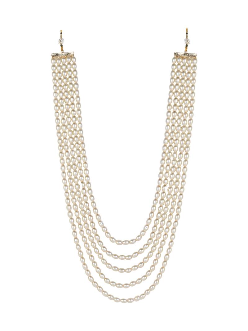 5 Layered Traditional Gold Plated Dulha Moti Mala Maharaja Haar/Groom Necklace For Men (Mlp58w)