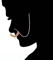 Product Name Ethnic Bridal Clip On Nose Ring/Nath Without Piercing With Chain Encased With Faux Stones For Women/Girls
