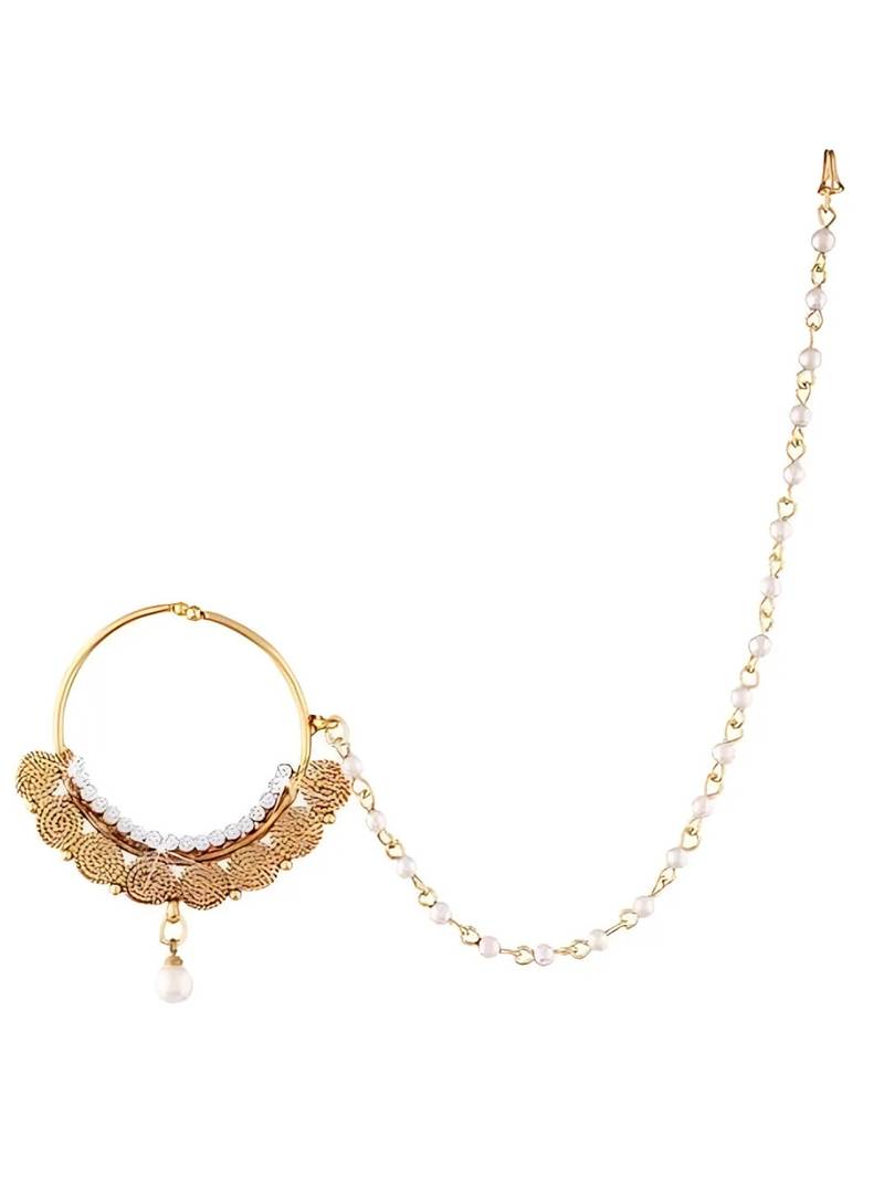 Gold Plated Finish: The Nose Ring/Nath Boasts A Luxurious Gold Plated Finish, Giving It A Radiant And Traditional Look Perfect For Bridal Wear.