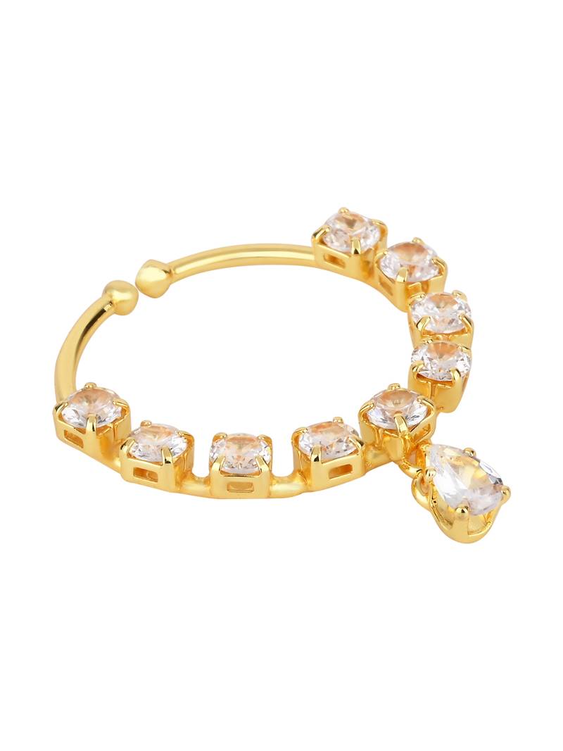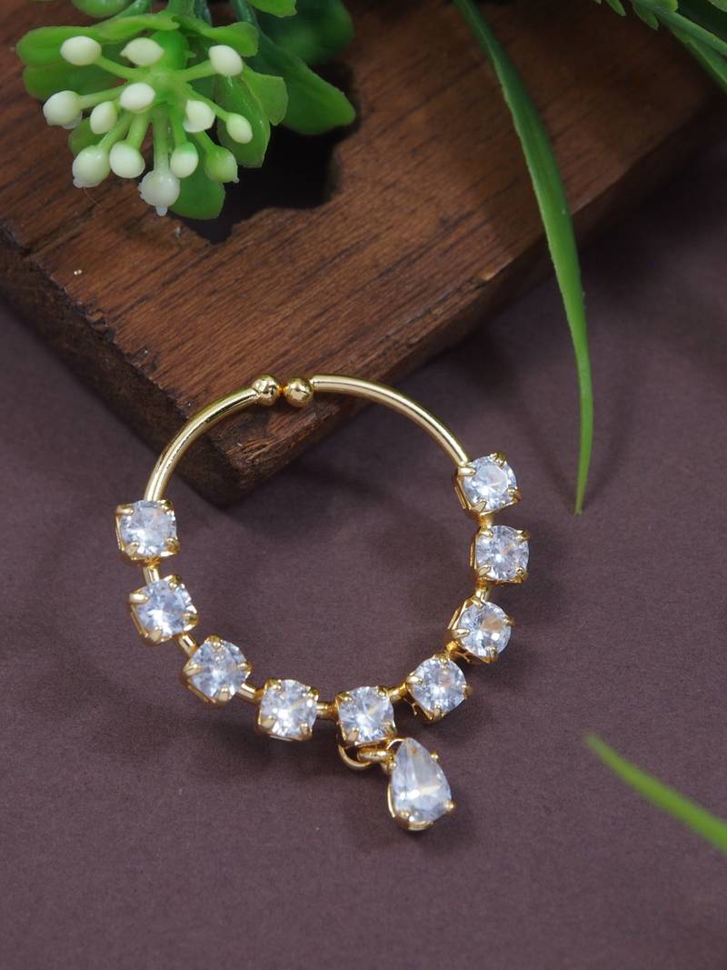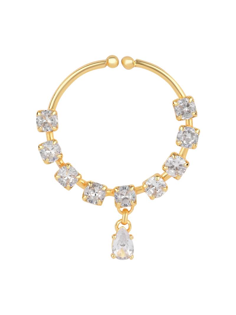 Gold Plated Drop Cz American Diamond Non Piercing Screw Press Nose Ring For Women