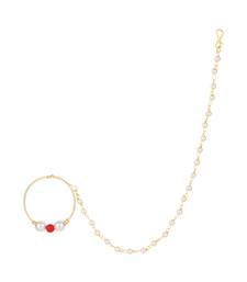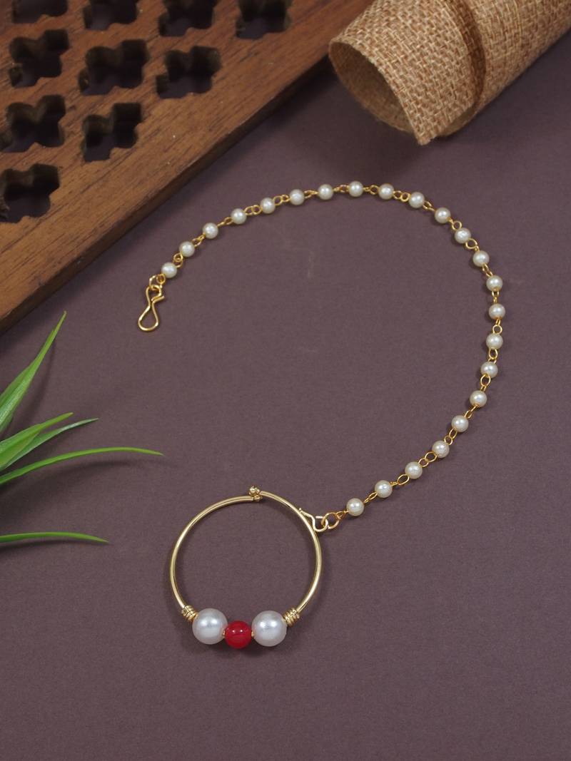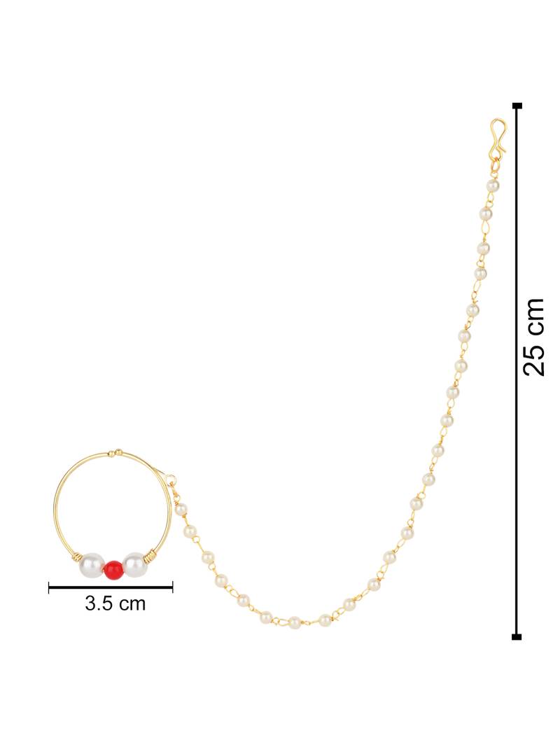 Gold Plated Ethnic Bridal Nose Ring/Nath Without Piercing With Single Pearl Chain For Woman