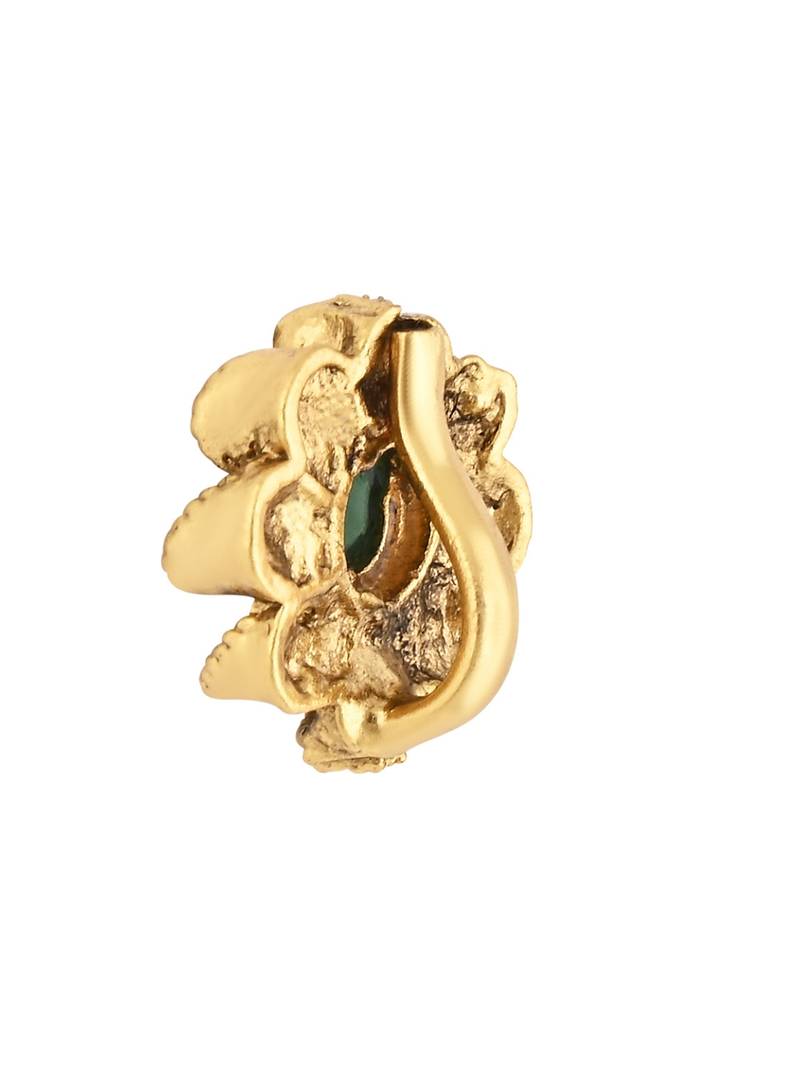 Gold Plated Design: This Nose Pin Features A Gold Plated Design, Giving It An Elegant And Traditional Look That Complements Various Styles Of Clothing And Occasions. The Gold Plating Adds A Touch Of Luxury To The Piece.