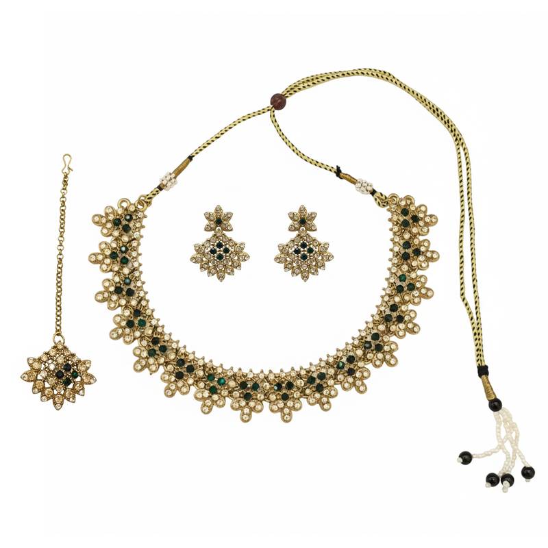 | Product Name | Gold Plated Traditional Floral Necklace Set With Earrings & Maangtikka For Women | |