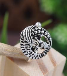 Navratri Ethnic Silver Plated Peacock Design Clip On Non Piercing Pressing Type Nose Pin, Nose Ring Stud For Women