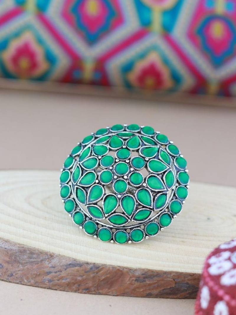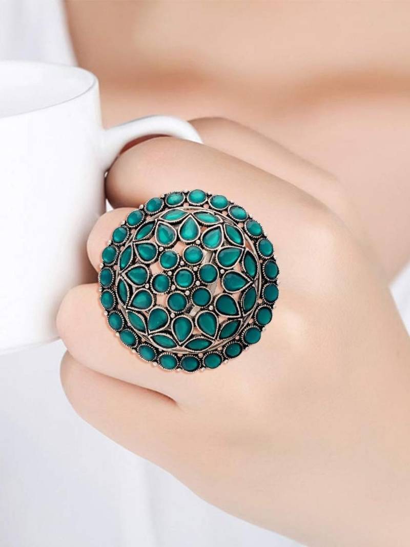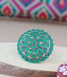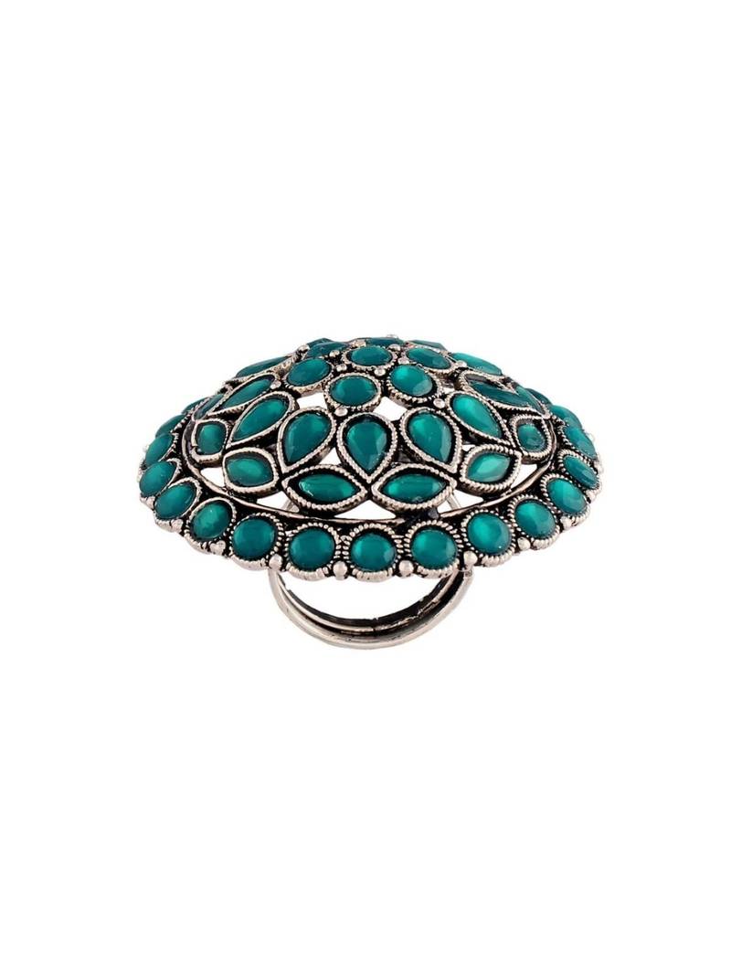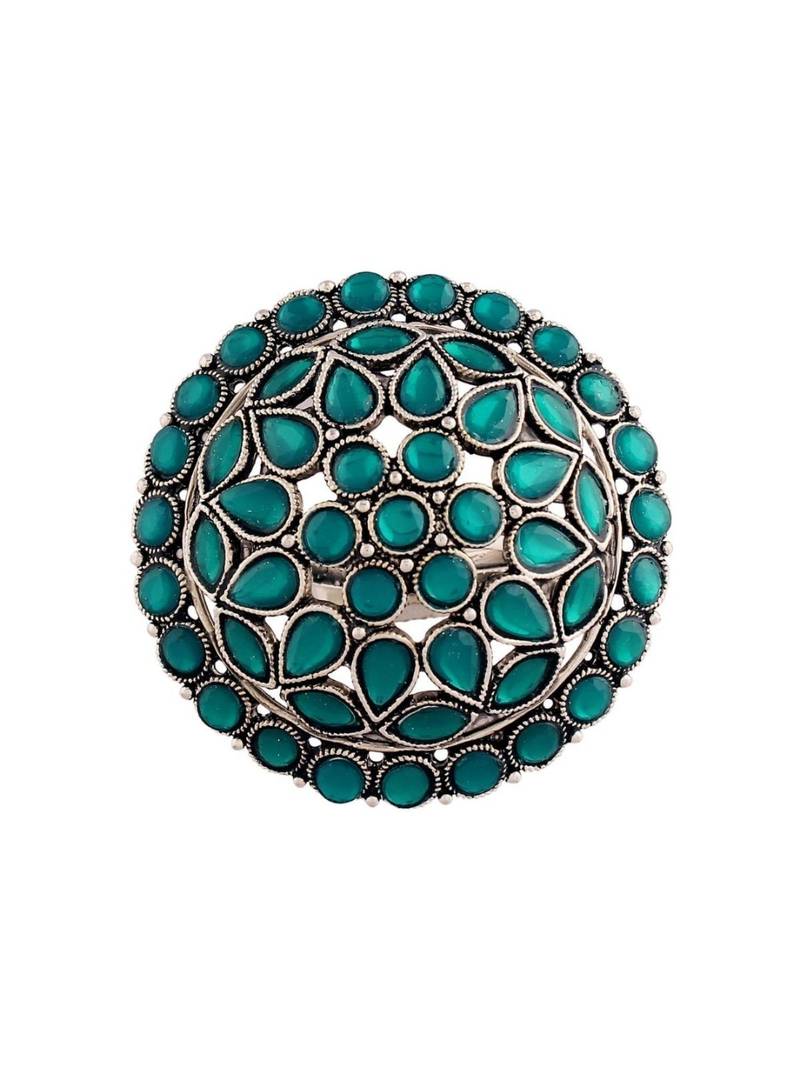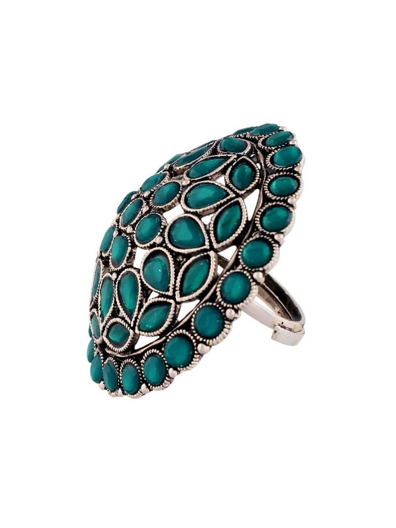 Silver Oxidized Kundan Work Designer Adjustable Finger Ring For Women