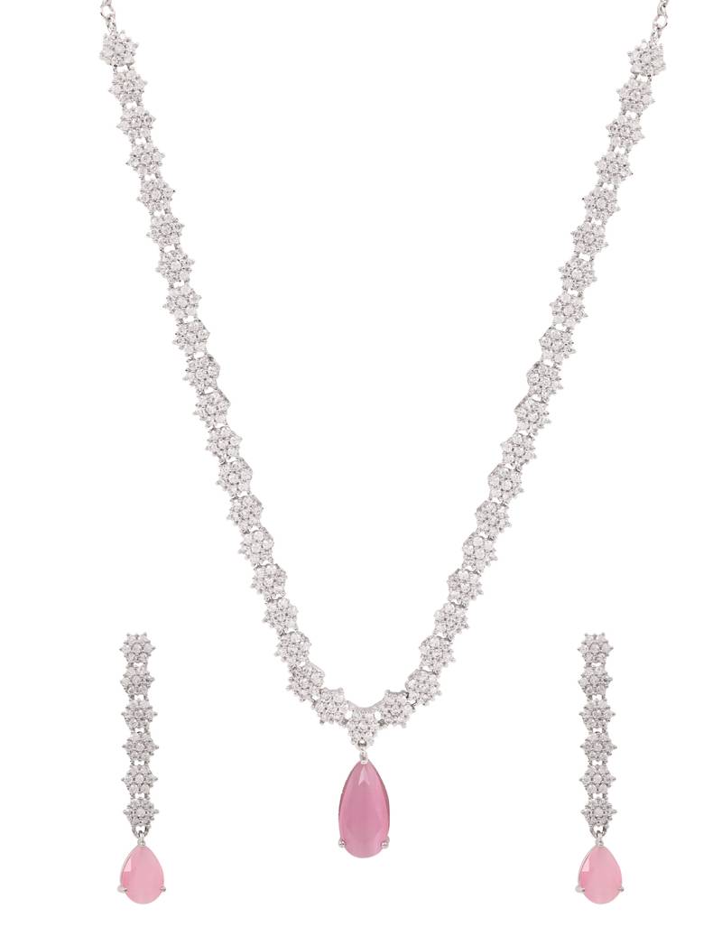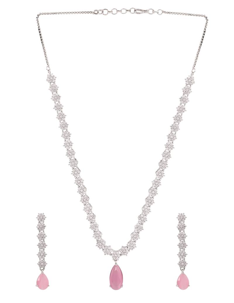 Product Name | Silver Plated Cubic Zirconia American Diamond Necklace & Earrings Jewellery Set For Women | |