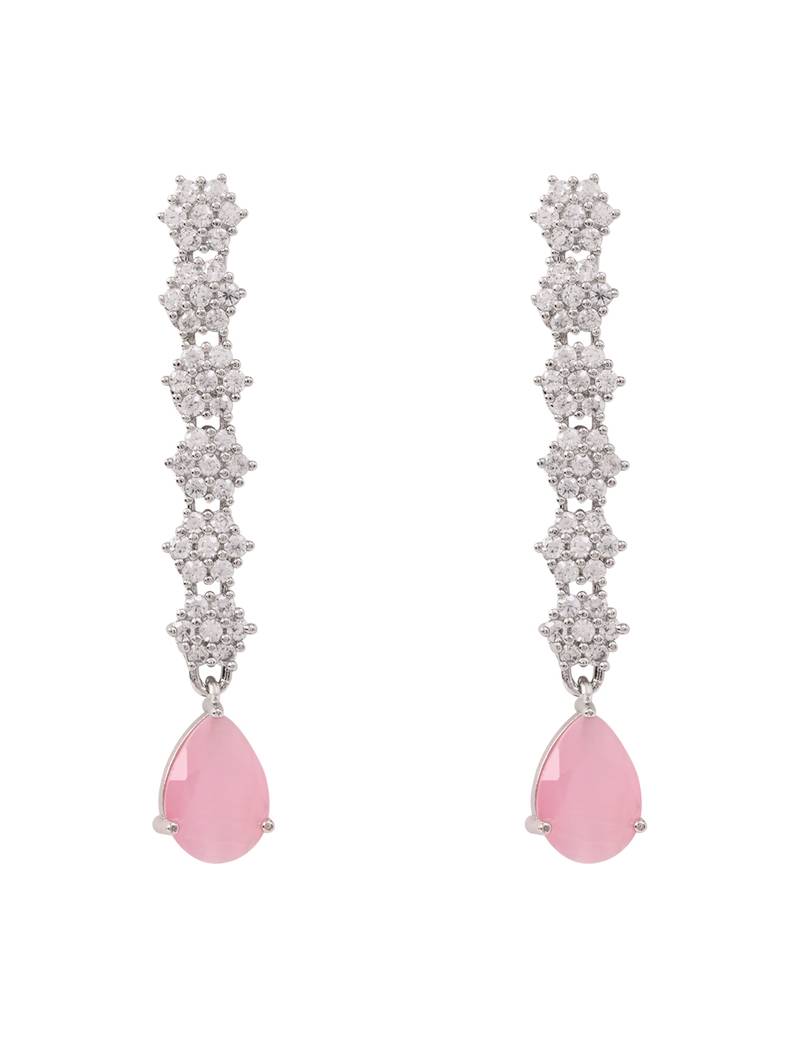 Silver plated cubic zirconia american diamond necklace & earrings jewellery set for women