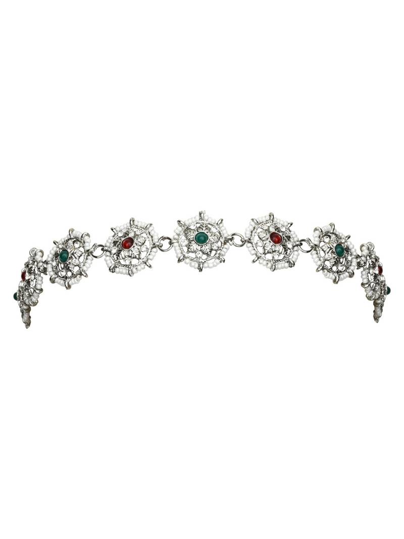 Silver plated traditional floral kundan & pearl sheeshphool matha patti sheeshpatti for women