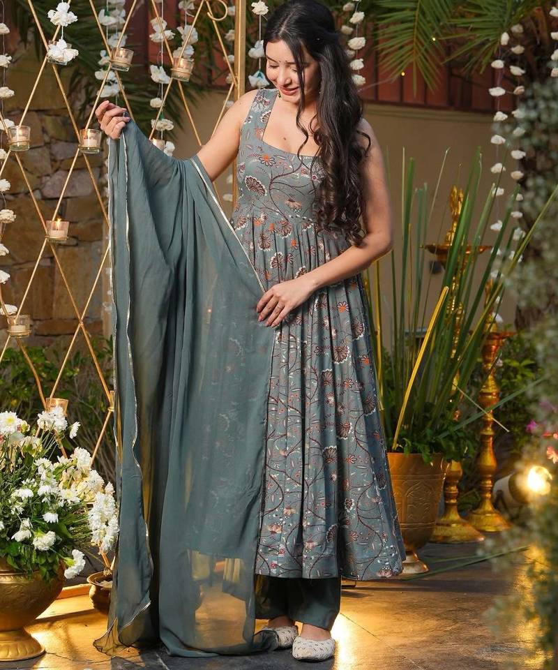 | • | Dupatta | : | Color- Grey / Fabric- Georgette |