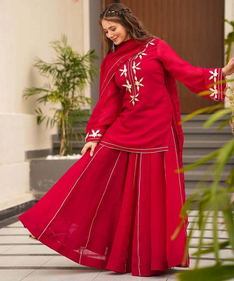 | Product Name | Red Embroidered Kurta Palazzo Set | |
