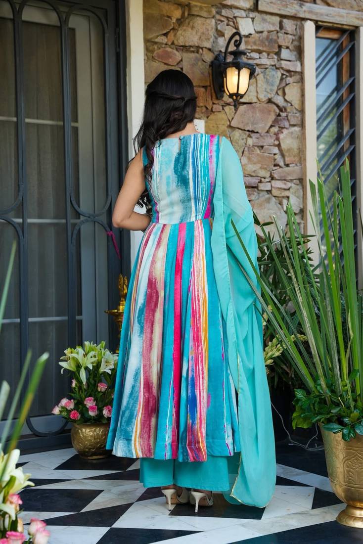 | Product Name | Sky Blue Embroidered Rayon Anarkali Suit Set | |