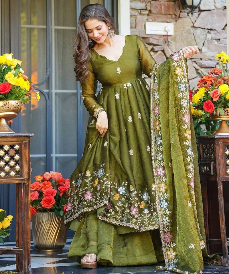 | Product Name | Green Embroidered Organza Anarkali Suit Set | |