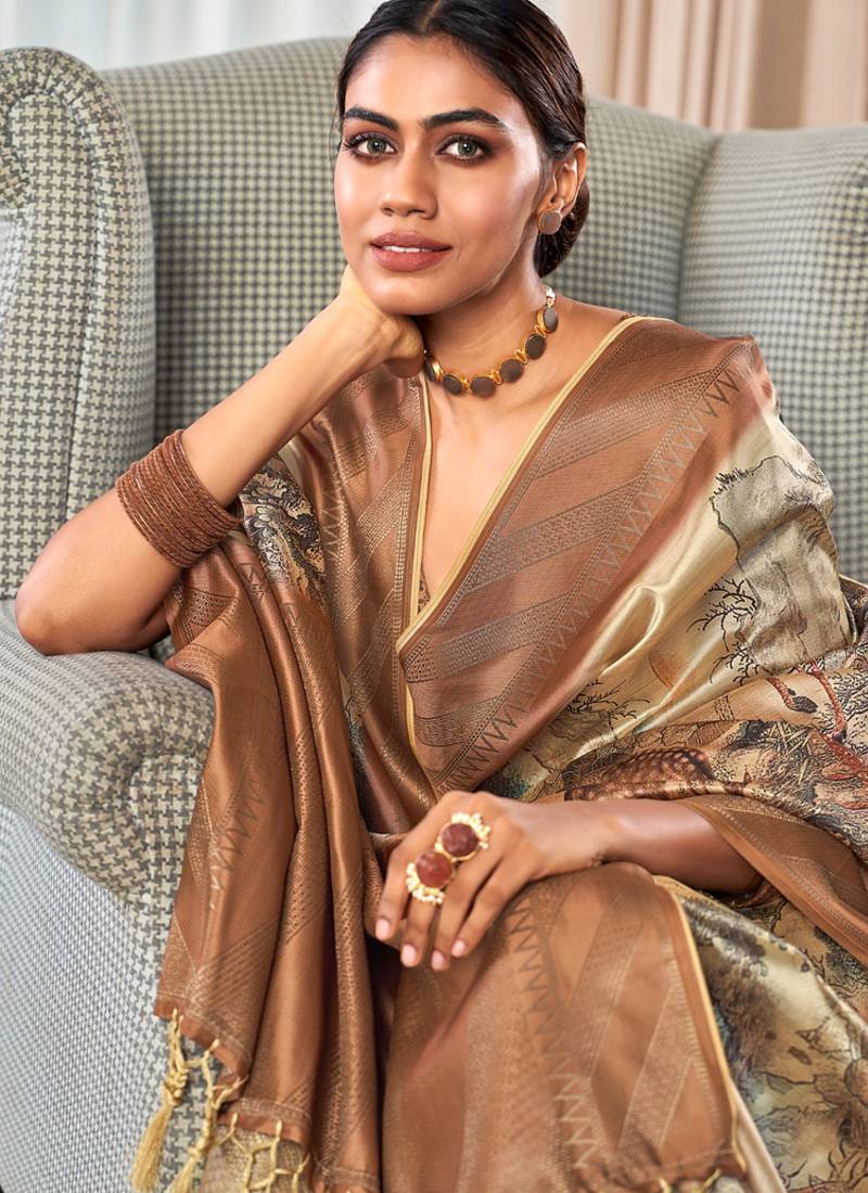 | Product Name | Beige Handloom Silk Blend With Digital Print With Zari Big Border | |