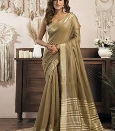 Beige khadi cotton saree with elegant jhallar border saree