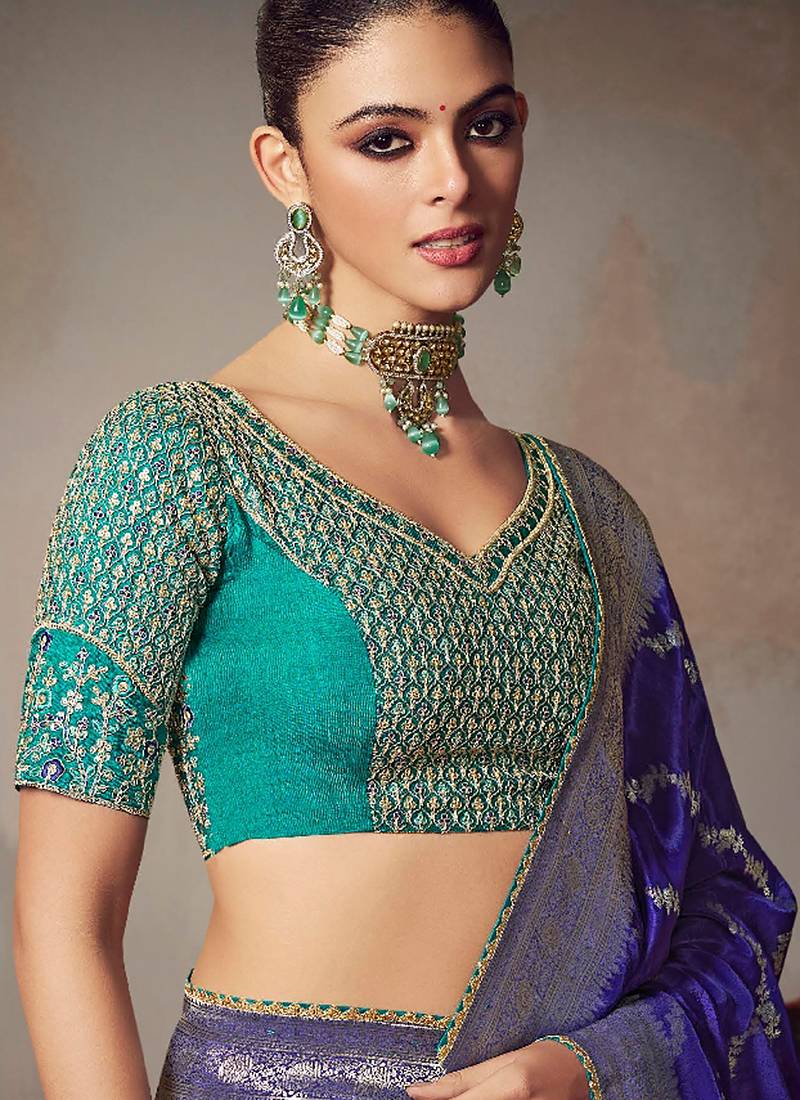 | Product Name | Blue Chiniya Silk Blend Saree Heavy Designer Embroidered Blouse | |