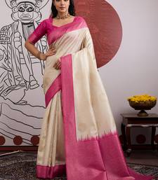 Green & off-white handloom weaving paper silk blend saree
