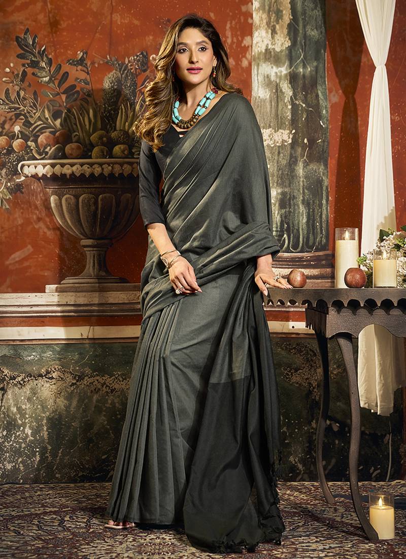 | Product Name | Grey Mal Cotton Contrast Pallu Fancy Tassels Saree | |