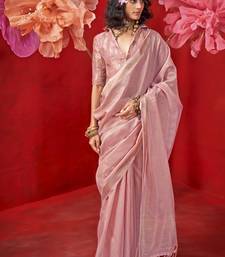 Light baby pink zari tissue handloom weaving silk saree