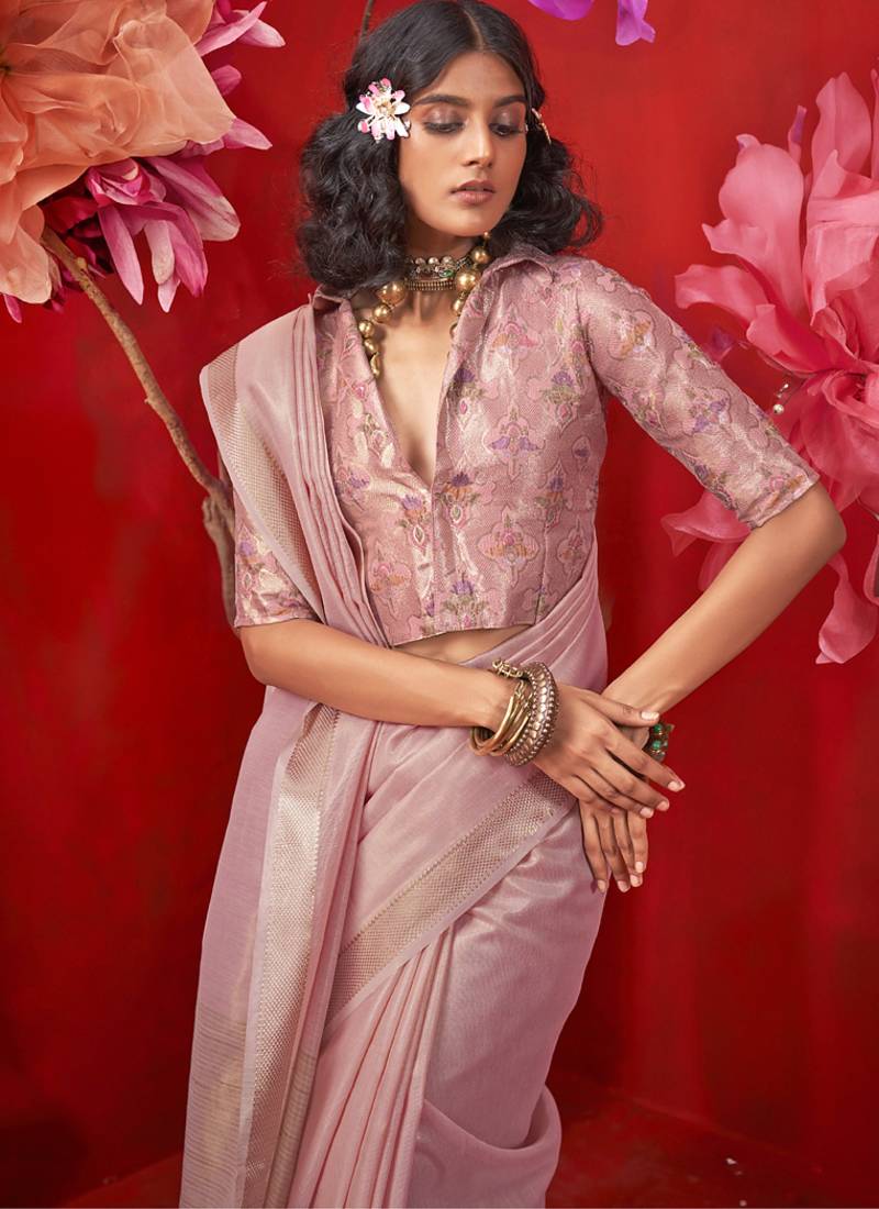 | Product Name | Light Baby Pink Zari Tissue Handloom Weaving Silk Saree | |