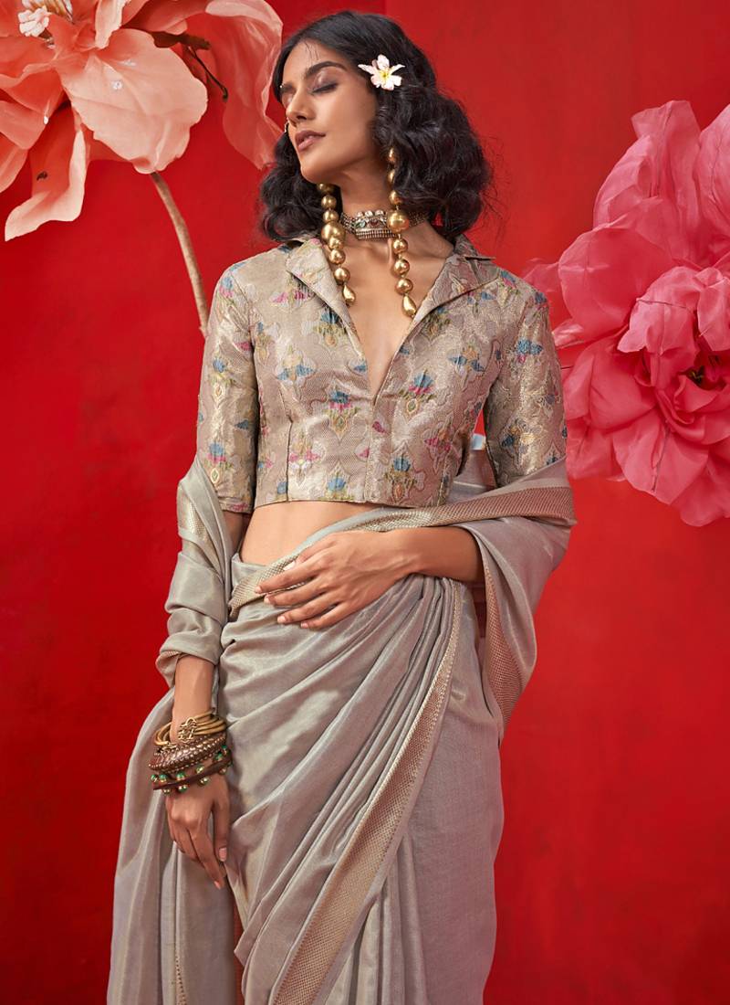 | Product Name | Light Gray Zari Tissue Handloom Weaving Silk Saree | |