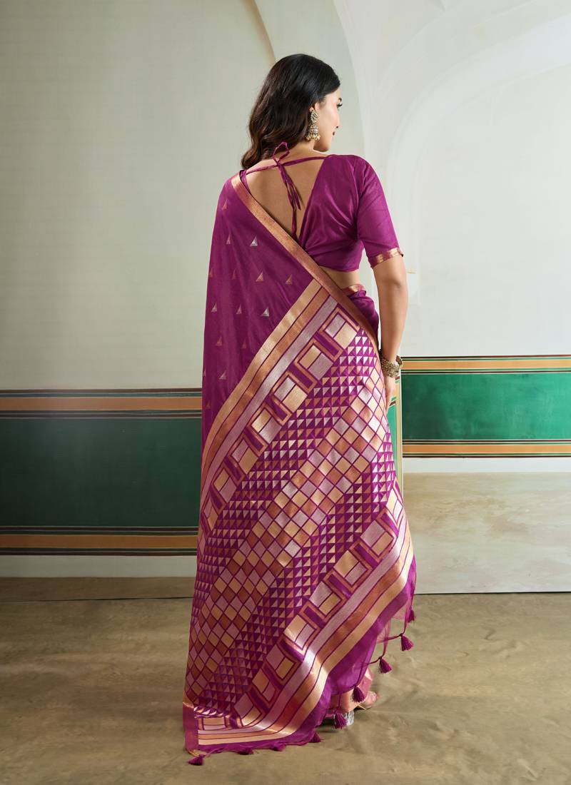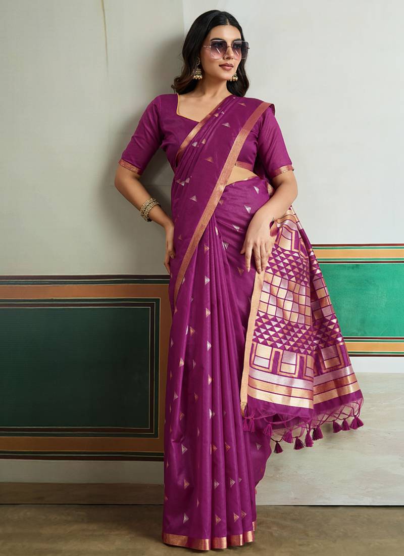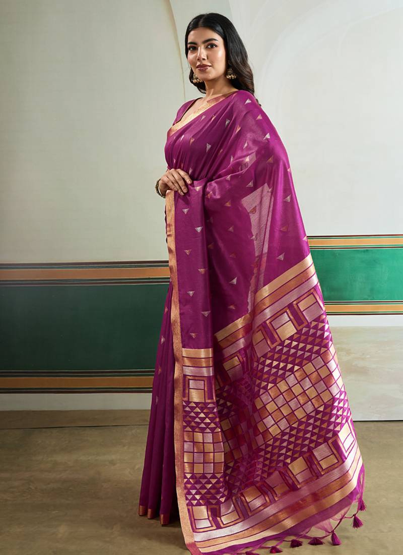 Magenta silk blend weaving handloom festival wear saree