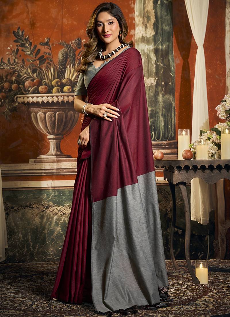| Product Name | Maroon Mal Cotton Contrast Pallu Fancy Tassels Saree | |