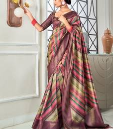 Multicolour handloom silk blend with digital print with zari big border