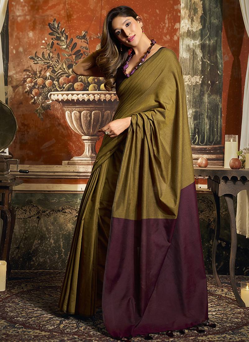 | Product Name | Olive Mal Cotton Contrast Pallu Fancy Tassels Saree | |