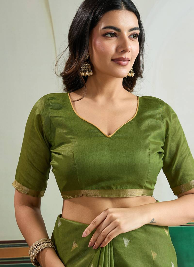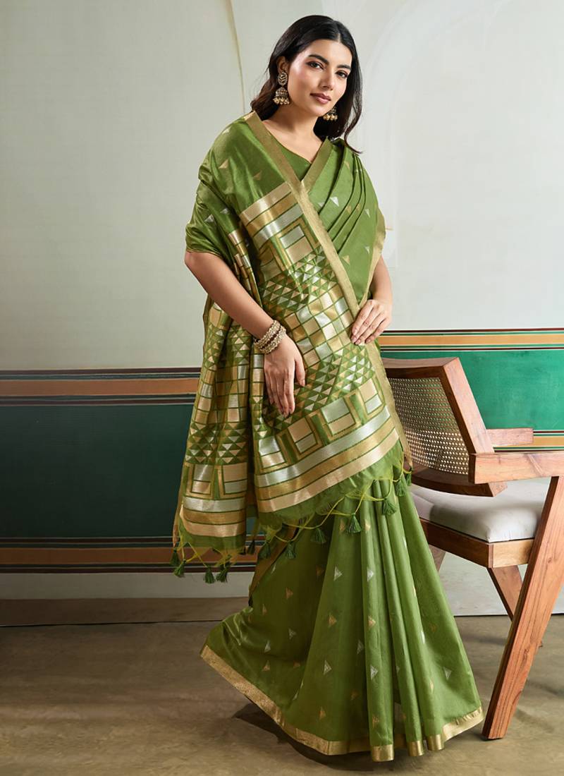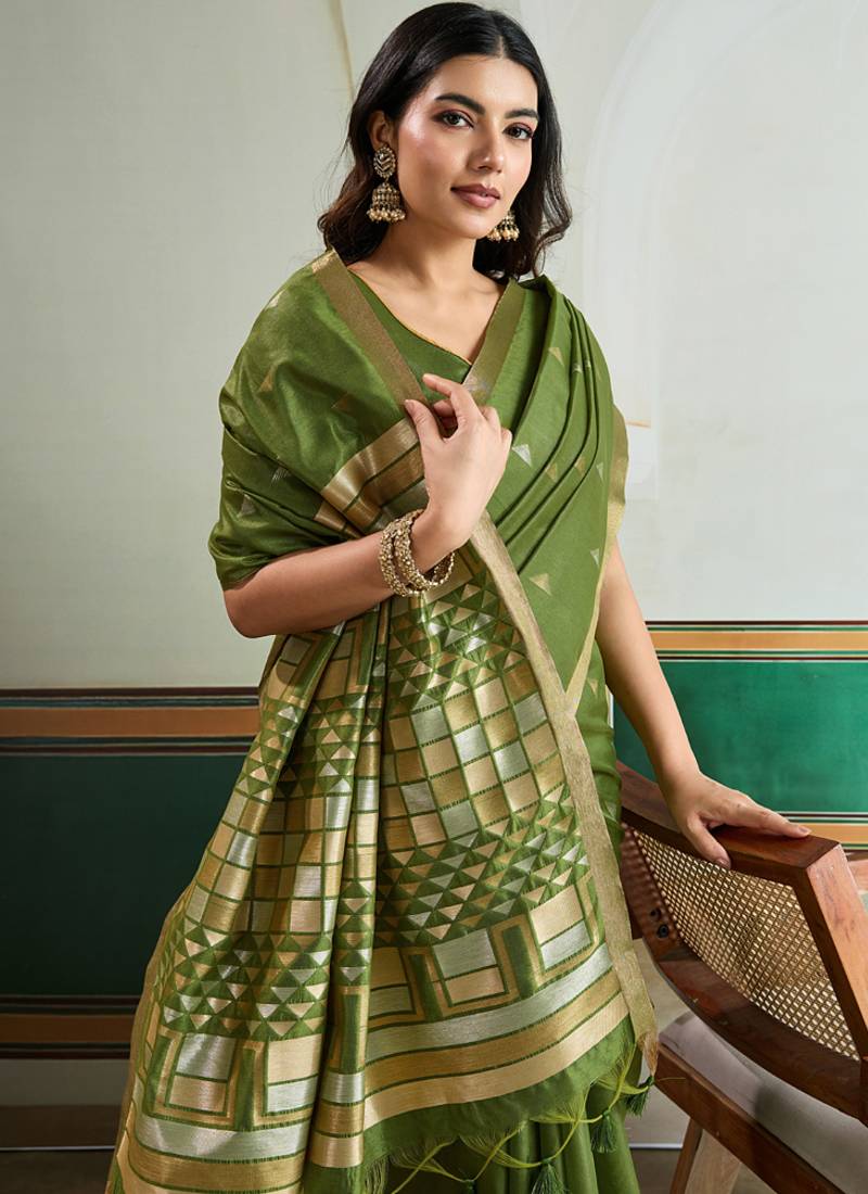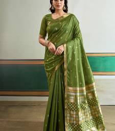Olive silk blend weaving handloom festival wear saree