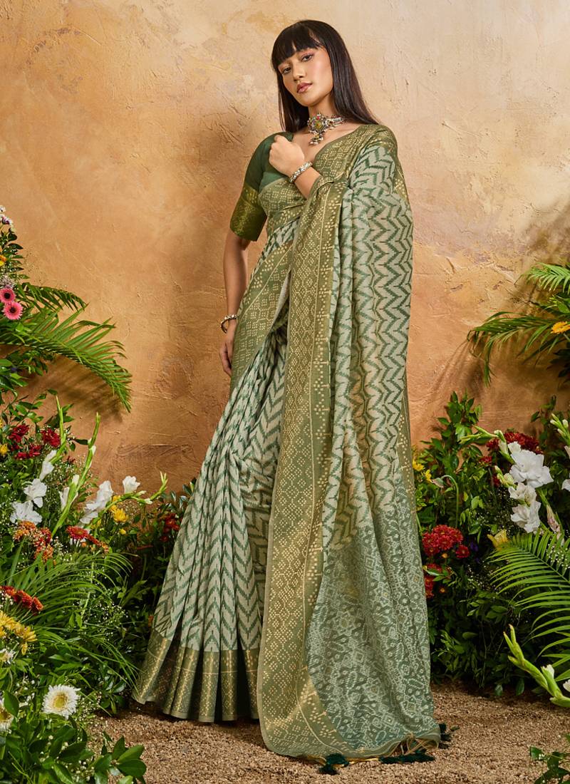 Olive viscose cotton handloom weaving patola saree