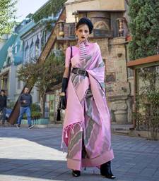 Pink katan silk blend handloom weaving saree
