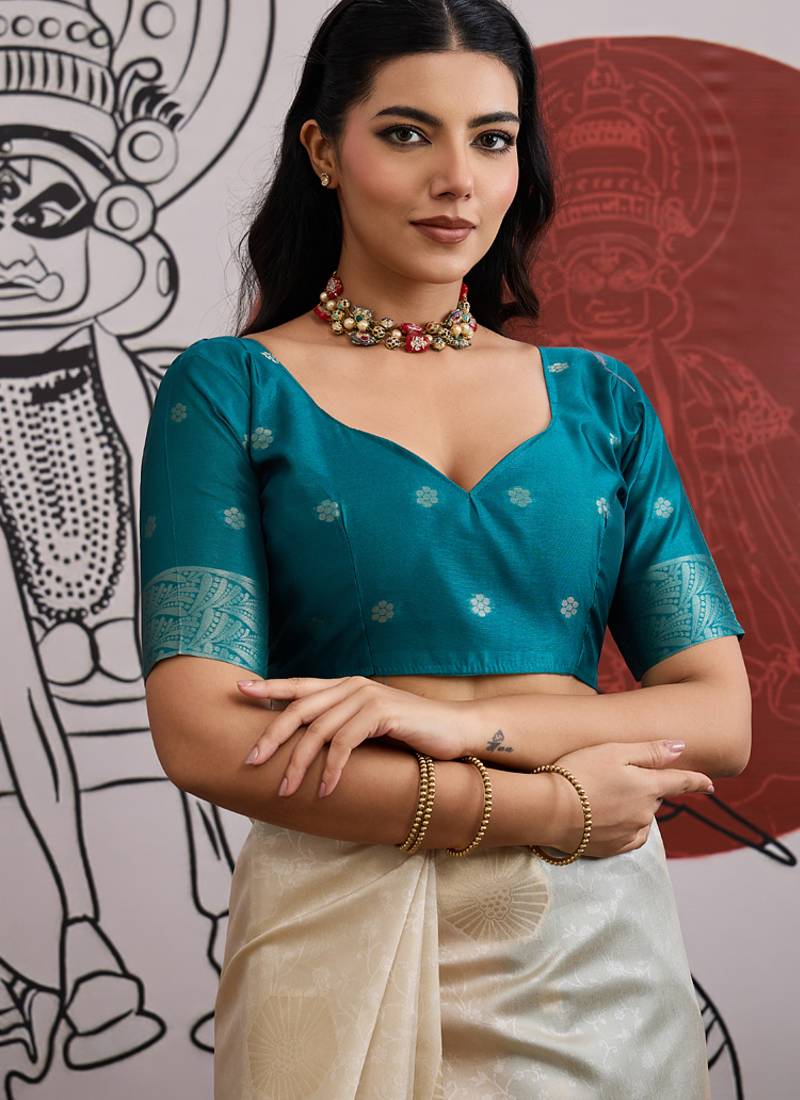 | • | Saree | : | Color- Off White / Fabric- Silk Blend |