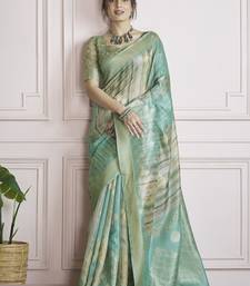 Pista handloom khadi silk blend with digital print with zari border casual wear saree