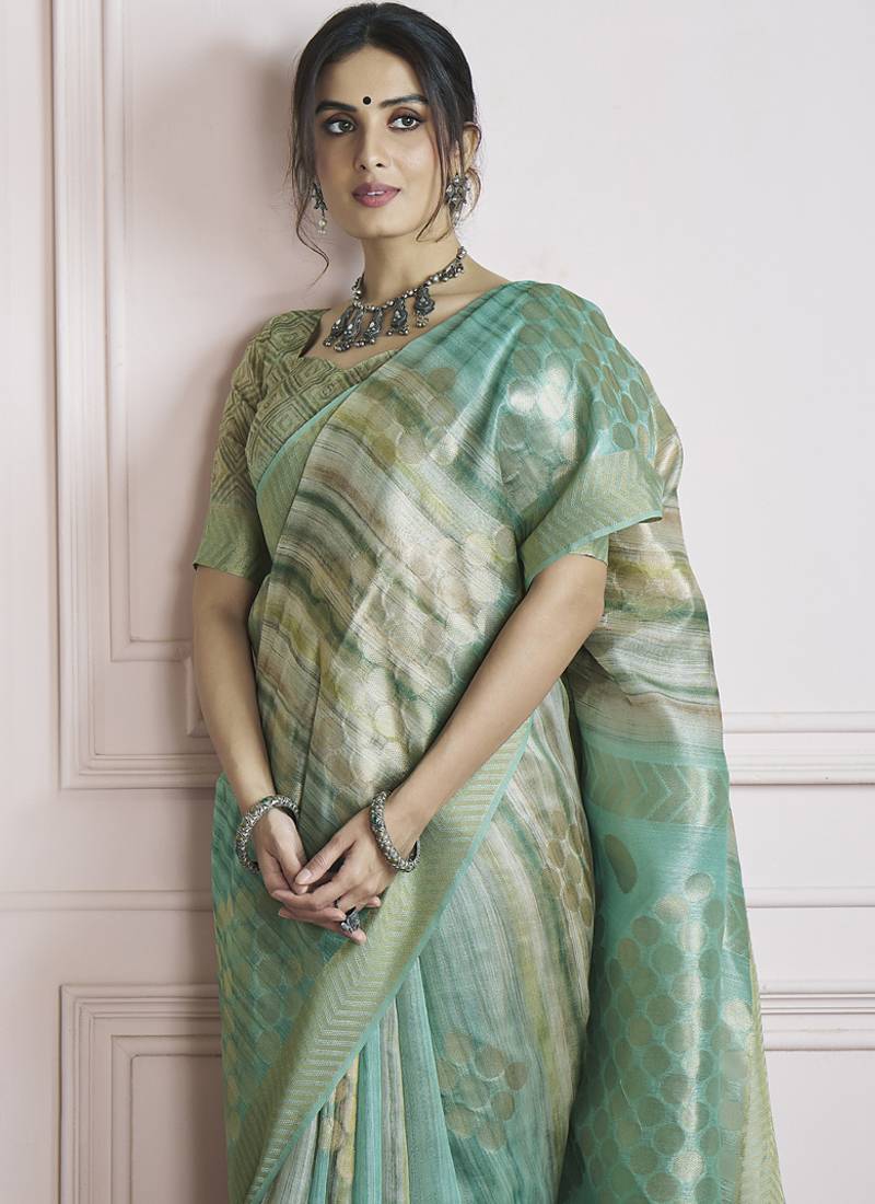 | Product Name | Pista Handloom Khadi Silk Blend With Digital Print With Zari Border Casual Wear Saree | |