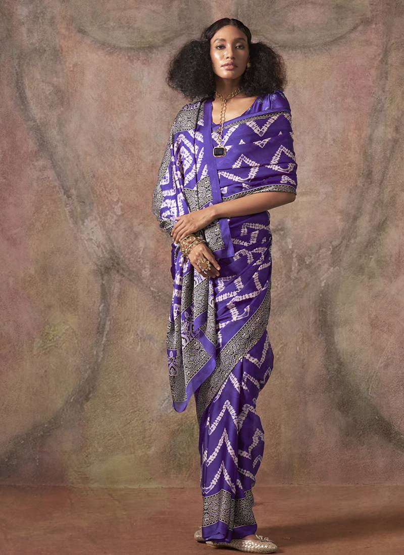 Purple ajrakh print satin georgette sarees