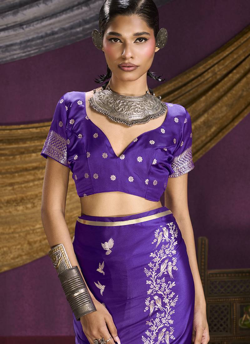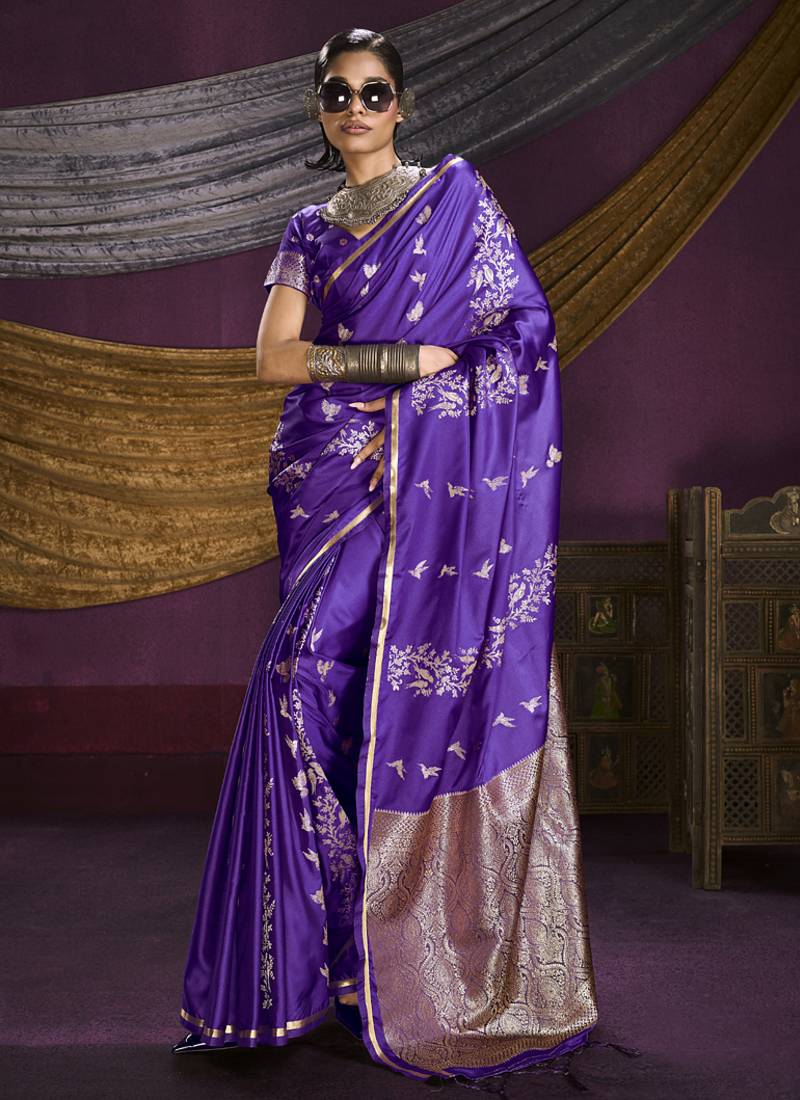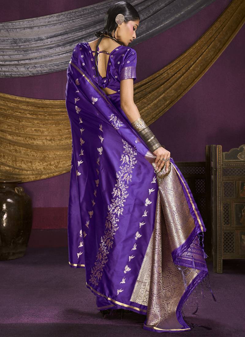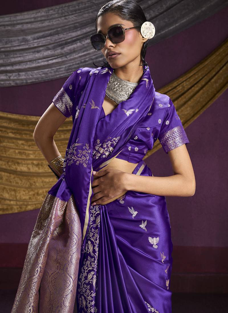 | Product Name | Purple Pure Satin Handloom Weaving Silk Saree With Tussle Pallu | |