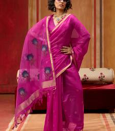 Rani pink munga cotton handloom weaving organza weaving pallu traditional wear saree