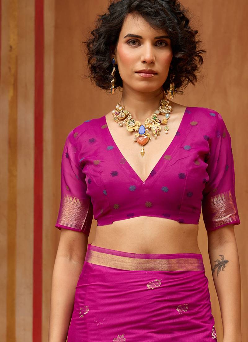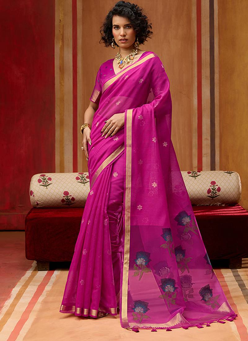 | Product Name | Rani Pink Munga Cotton Handloom Weaving Organza Weaving Pallu Traditional Wear Saree | |